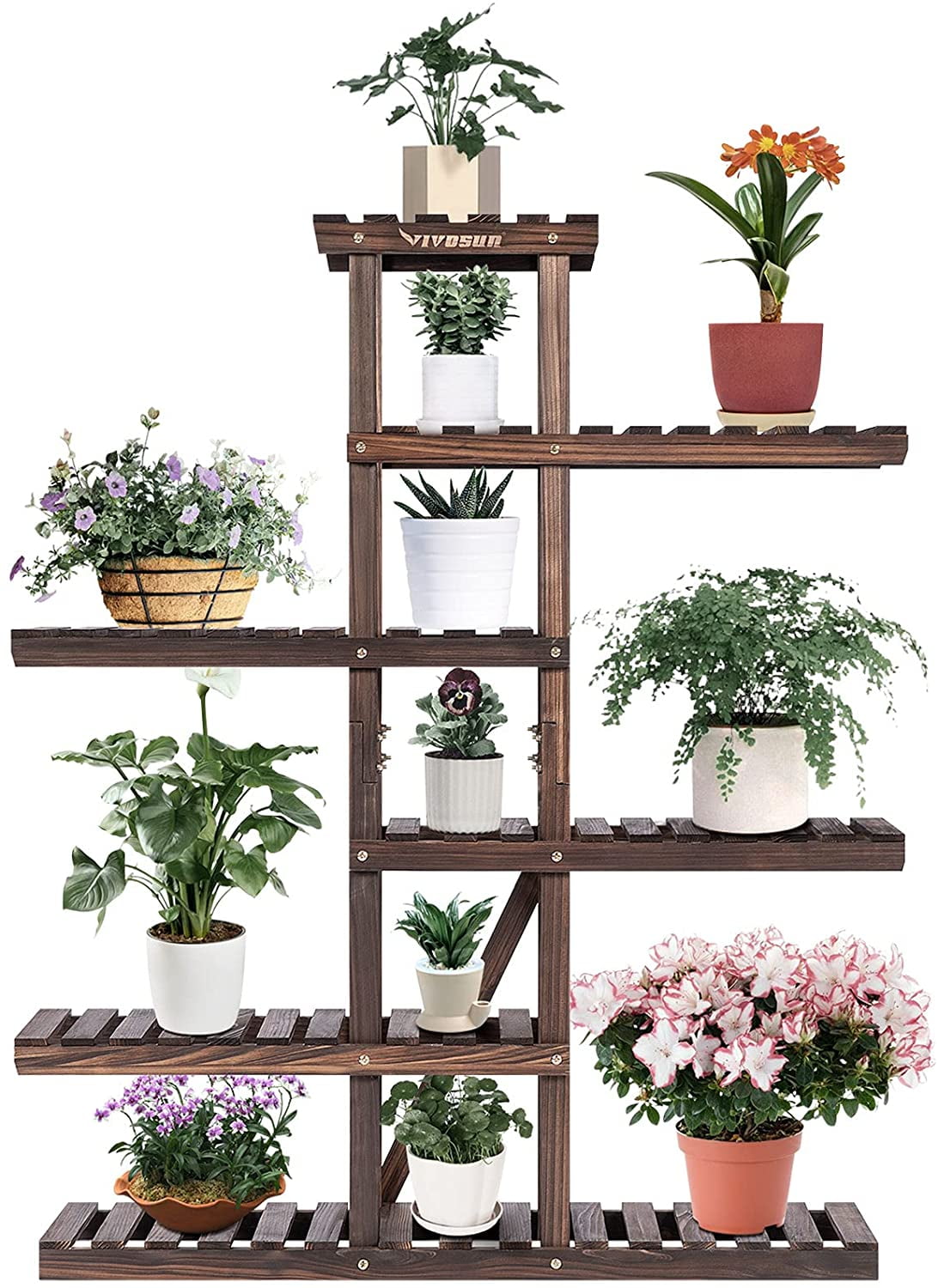 Vivosun Plant Stand 6 Tiers 12 Potted Indoor Plant Shelf Tiered Wooden Flower Holder Ladder Plant Rack For Garden Balcony Patio Corner Window Living Room Walmart Com